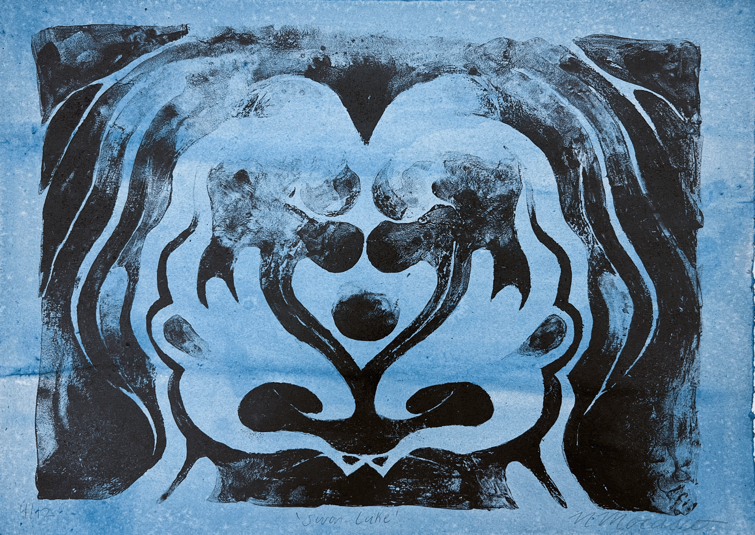 I have been enjoying experimentation with symmetrical form in my work. This piece also serves as experimentation with tusche as a method for drawing for Lithography. There are 12 unique copies.