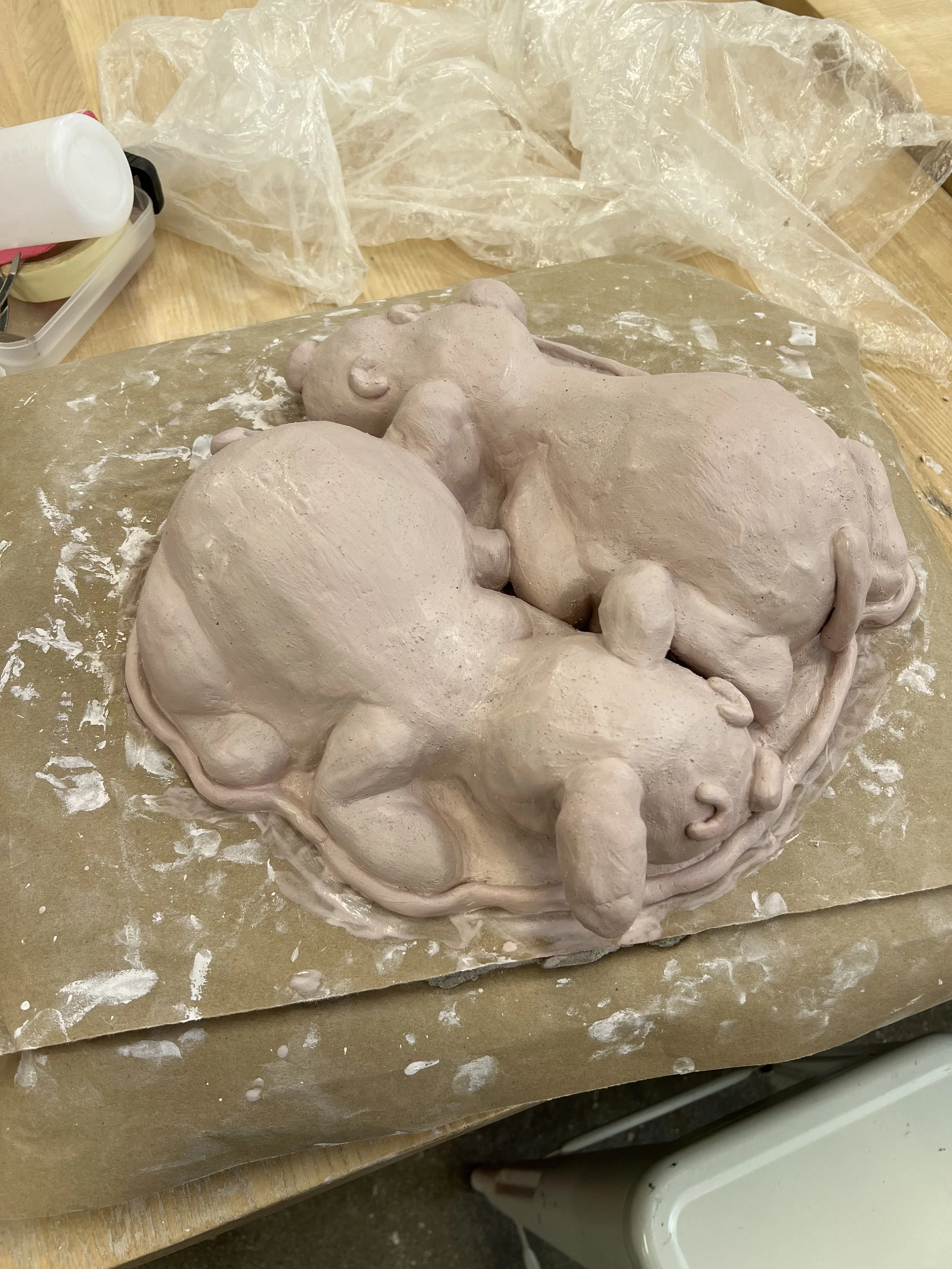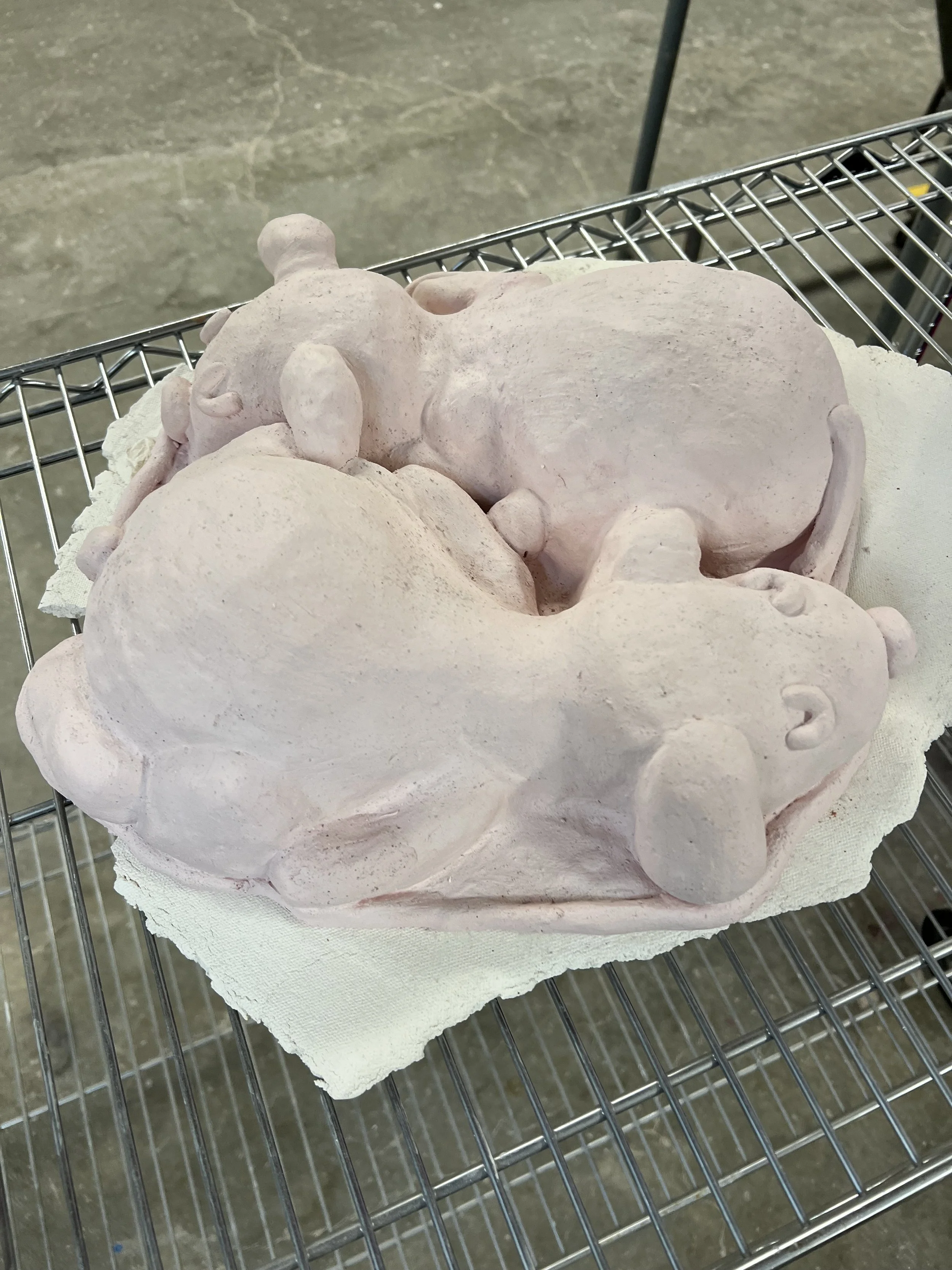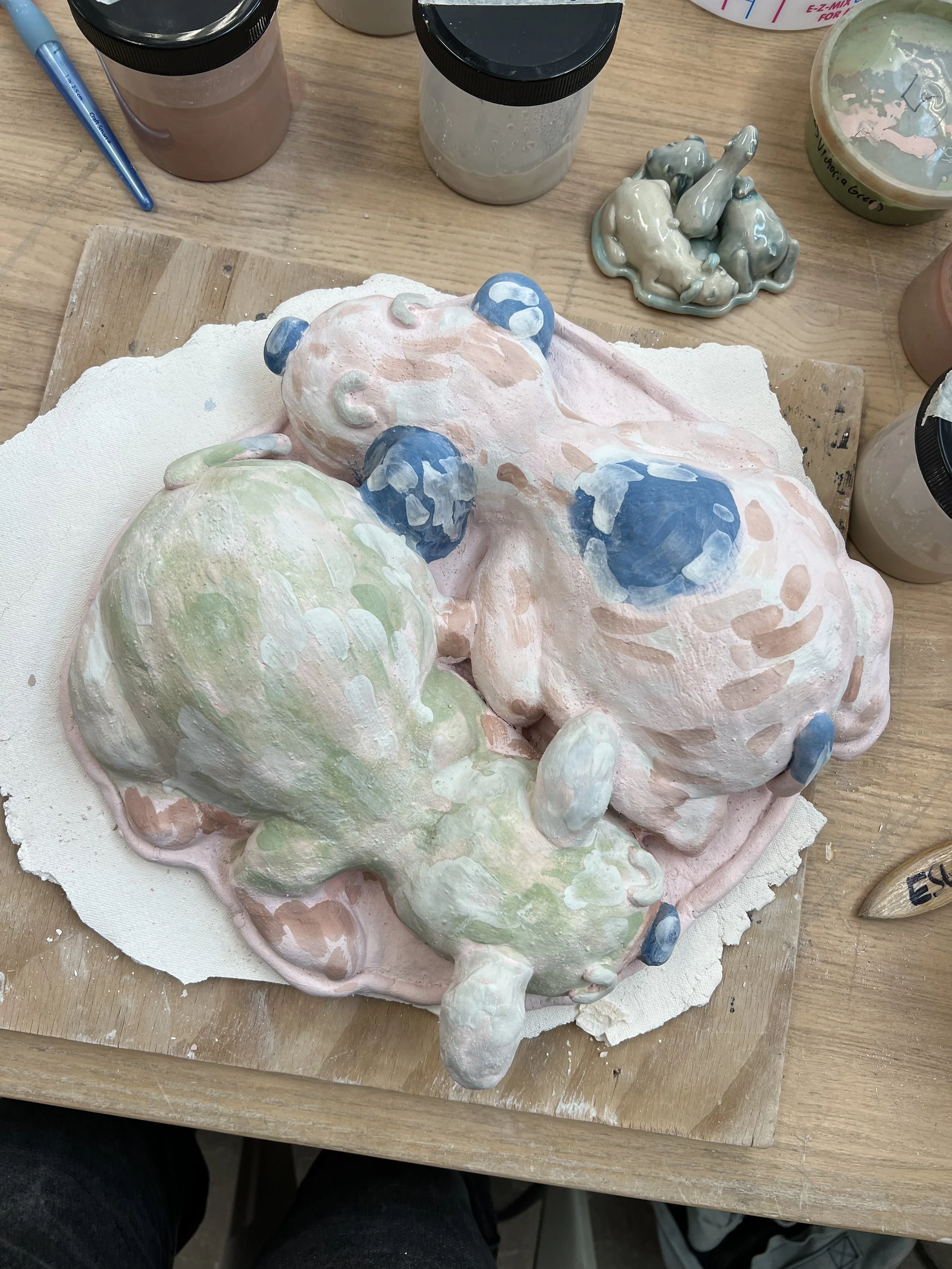 Oct 2022, handmade pink clay, handmade underglaze, clear glaze